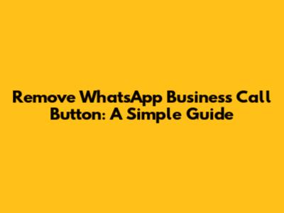 Remove WhatsApp Business Call Button: A Simple Guide