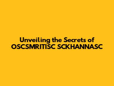 Unveiling the Future: What's Next for OSCSMRITISC SCKHANNASC?