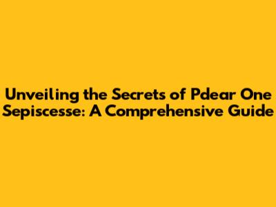 Hey everyone, let's dive into the fascinating world of Pdear One Sepiscesse. This might sound like a mouthful, but trust me, it's a super interesting topic. We're going to break it down, make it easy to understand, and explore everything you need to know. Buckle up, because we're about to embark on a journey of discovery! We'll start by defining what it is and then delve into various aspects of it.