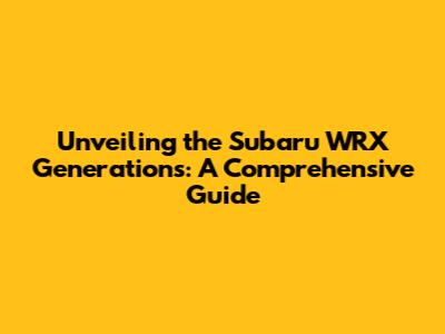 Hey guys! Ever wondered about the evolution of the Subaru WRX? This guide breaks down each generation, offering insights into their unique features, performance, and what makes each one special. We'll dive deep into the world of the WRX, exploring its rich history, from its rally-inspired roots to its modern-day dominance. Buckle up, because we're about to take a thrilling ride through the generations of this iconic car!