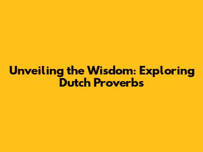 Diving into Dutch Proverbs: Their Origins and Meanings