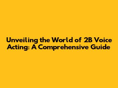 Hey there, voice acting enthusiasts! Ever wondered about the captivating world of 2B voice acting? Well, you're in the right place! In this comprehensive guide, we'll dive deep into everything you need to know about becoming a 2B voice actor, from understanding the character's nuances to navigating the industry's landscape. So, grab your headphones, and let's embark on this exciting journey together!