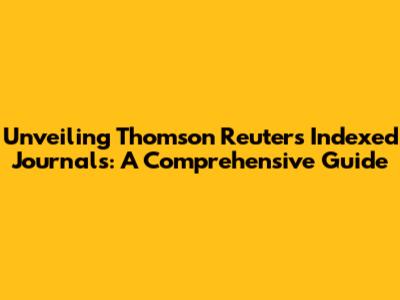 Unveiling Thomson Reuters Indexed Journals: A Comprehensive Guide