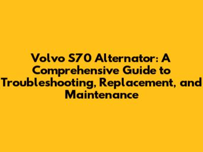 Troubleshooting Your Volvo S70 Alternator: A DIY Approach
