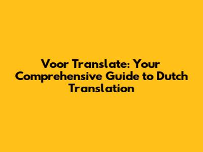 Tips for Accurate "Voor" Translation