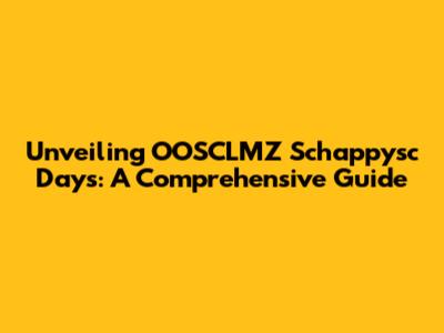 Unveiling OOSCLMZ Schappysc Days: A Comprehensive Guide