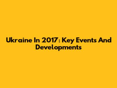 Ukraine In 2017: Key Events And Developments